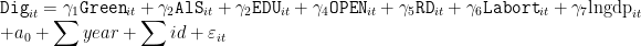 为证明绿色金融能够通过促进产业结构的优化升级来影响数字经济的发展。本研究建立了固定效应模型和中介效应模型,以探讨绿色金融对数字经济发展所产生的影响。