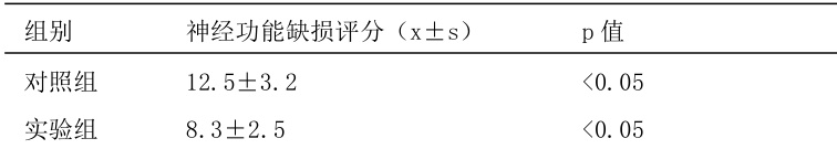 治疗后,实验组神经功能缺损评分显著低于对照组 (P⟨0.05) )。