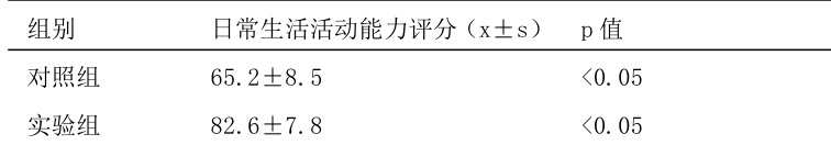 治疗后,实验组日常生活活动能力评分明显高于对照组 (P⟨0.05) )。