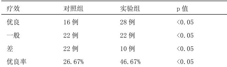实验组神经功能恢复优良率为 46.67% ,显著高于对照组的 26.67% (P<0.05)。