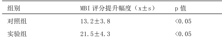 实验组日常生活活动能力MBI 评分提升幅度明显大于对照组 (P⟨0.0