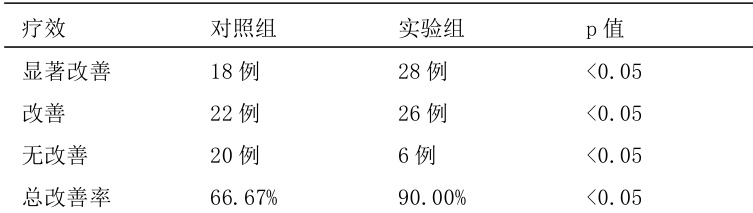 实验组并发症总改善率为 90.00% ,显著高于对照组的 66.67% ( ⋅P≪0. 0 5)。