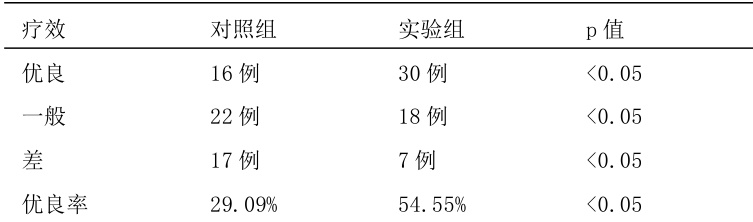 实验组神经功能恢复优良率为 54.55% ,显著高于对照组的 29.09% (P⟨0.05⟩ )。
