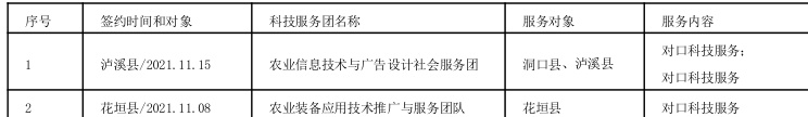 (4)新技术新成果推广。围绕服务地特色产业提质增效,为对接县市、企业提供科技成果转化应用服务。