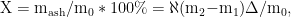 ,在该公式中, mash 代表着灰分质量,单位为 g:m0 为样品的初始质量,单位为 g ;m2 代表着重量恒定以后灰分坩埚的质量,单位为 g:n1 代表着重量恒定以后无灰分的坩埚质量,单位为 g;X 代表着具体的灰分含量,单位为