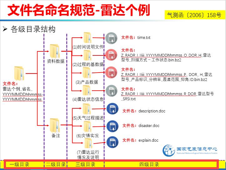 基数据、产品数据文件整编的文件名要统一采用规定要求命名规则进行文件命名。雷达站要将通过敏视达软件采集的基数据和产品数据文件的文件名转换为本命名规则要求的文件名保存。
