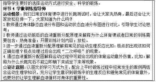 思路 1 是跨学科教学不是单一知识的传授,是多学科,全面的提升。但是要立足体育学科为主体的,其他学科辅助的进行。本文结合生物知识《血液循环》在不同运动强度下,让学生体会血液循环的速度是不同的,即加深了血液循环的概念,又进一步学会了运动和血液循环的关系。