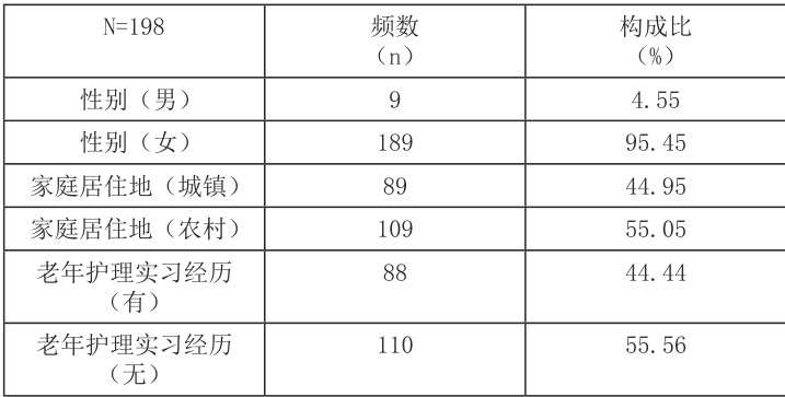 表1 198 例护生一般资料分布
