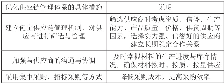 EPC 总承包商应建立健全供应链管理机制,对供应商进行筛选与管理[5]。在选择供应商时,需考虑其资质、信誉、生产能力、产品质量、价格以及供货周期等因素,选择那些实力强、信誉好的供应商建立长期稳定的合作关系。同时,加强与供应商的沟通与协调,及时掌握材料的生产进度与库存情况,确保材料能够按时、按质、按量供应。此外,还可以通过集中采购、招标采购等方式,降低采购成本,提高采购效率。例如,对于用量较大的光伏组件、逆变器等设备,采用招标采购的方式,吸引更多供应商参与竞争,从中选择性价比最高的产品,如表1 所示。