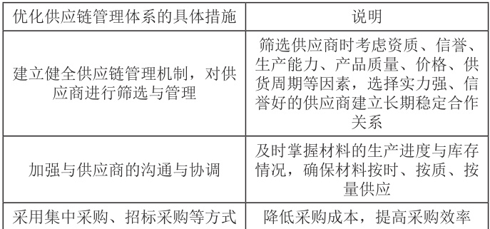 EPC 总承包商应建立健全供应链管理机制,对供应商进行筛选与管理[5]。在选择供应商时,需考虑其资质、信誉、生产能力、产品质量、价格以及供货周期等因素,选择那些实力强、信誉好的供应商建立长期稳定的合作关系。同时,加强与供应商的沟通与协调,及时掌握材料的生产进度与库存情况,确保材料能够按时、按质、按量供应。此外,还可以通过集中采购、招标采购等方式,降低采购成本,提高采购效率。例如,对于用量较大的光伏组件、逆变器等设备,采用招标采购的方式,吸引更多供应商参与竞争,从中选择性价比最高的产品,如表1 所示。