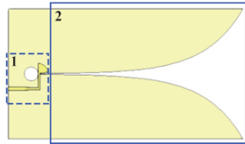 式(1)中 y1 和 y2 代表渐变槽线的曲线, y1 和 y2 轴对称, a1 与 a2 代表槽线曲率,( x1, y1) 与