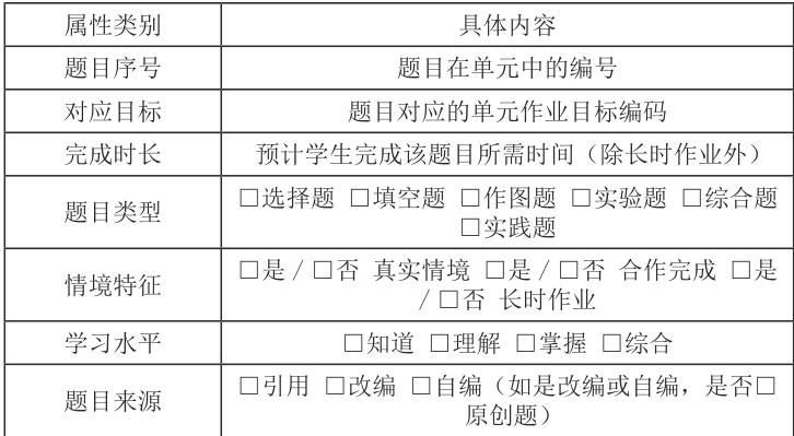 单元作业应基于单元目标进行系统设计,突出重难点并全面覆盖目标内容,同时结合学科教学要求的不同学习水平,设计相应层次的作业题目。
