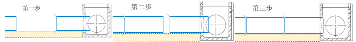 管、井安装衔接的通常顺序为:管道逐节安装至检查井时,临近检查井的2 节管道安装暂时停下,将检查井安装好,再将临近检查井的第 1 节管道插入检查井内,接着安装临近检查井的第 2 节管道,最后把第 1 节管道拔出接上第2 节管道,(若先安装好管道,拎着检查井往管道上“套”,则容易造成检查井基础密实度不一、扰动、倾斜的情况,当多方向接入时,也不可能拎着检查井多方向移动),见下图: