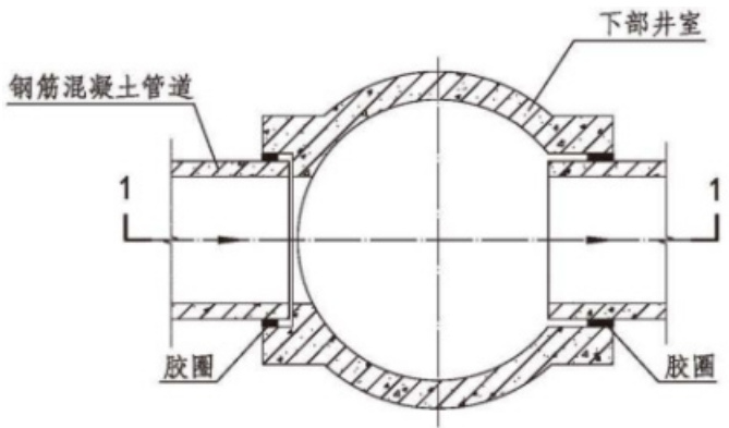在软弱地基上敷设的管道和检查井容易产生不均匀沉降,同样要求管、井接口处采取柔性连接,因此,本次设计强化管、井接口的柔性设计。