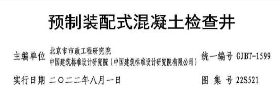 在国家相关部门的支持推动下,预制装配式排水检查井技术得以快速发展,国家标准图集和各省的标准图集相继出版,对各地的检查井预制工作起到了有效的指导和推动作用,如国家标准: