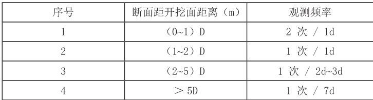 表2 按距开挖面距离确定的观测频次