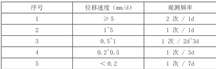 表3 按位移速率确定的观测频次