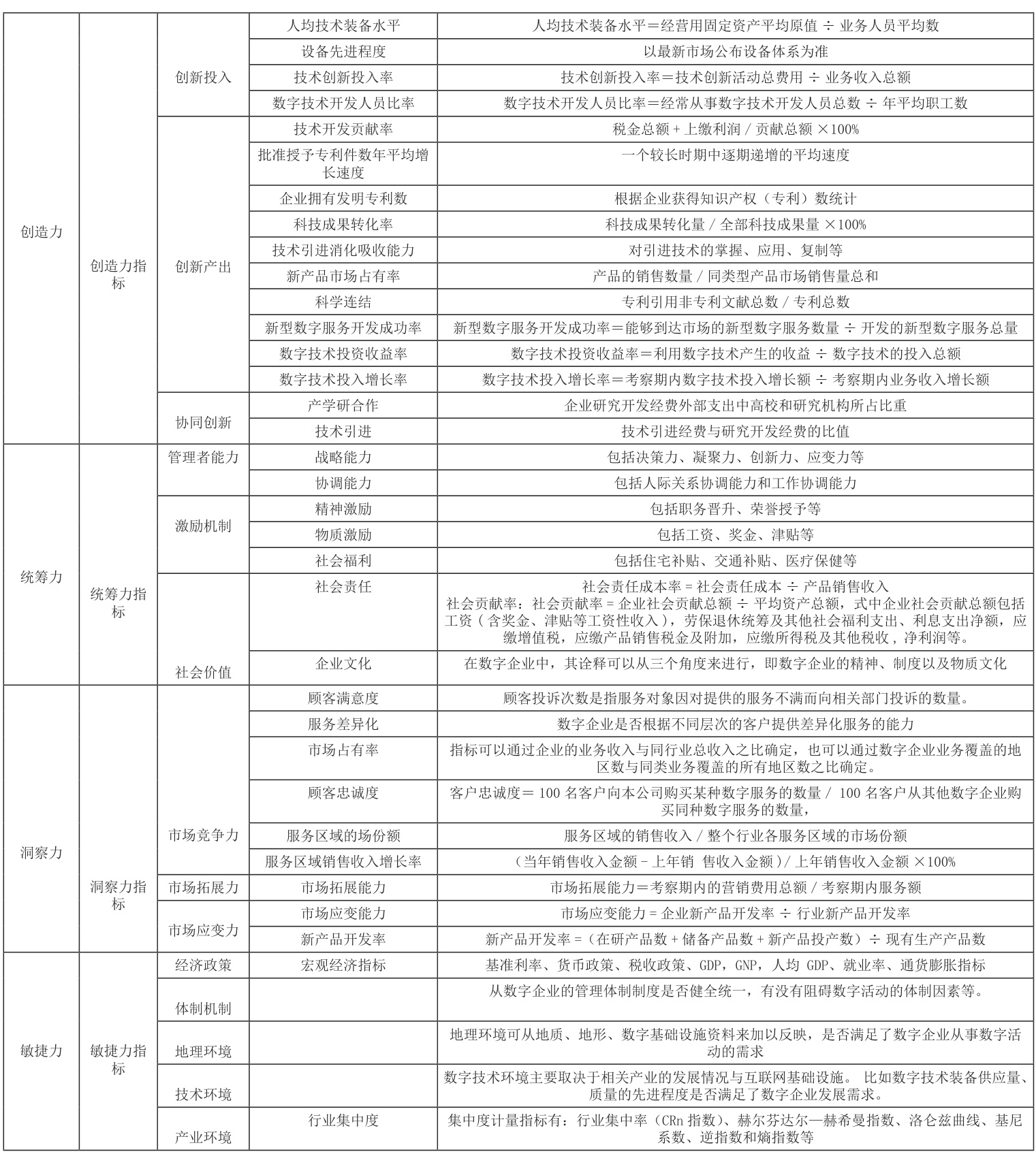 表1: 数字企业综合评价指标体系汇总表