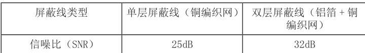 为探究不同类型屏蔽线的抗干扰能力,设计如下实验:在相同的高频电磁干扰环境(频率 1GHz,场强 10V/m )下,使用单层屏蔽线、双屏蔽线传输模拟信号,通过频谱分析仪测量接收端信号的信噪比(SNR),结果如下表所示。实验结果表明,在高频电磁干扰环境下,双屏蔽线的抗干扰能力明显优于单层屏蔽线。
