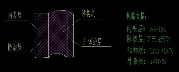 首先是缠绕树脂的控制,树脂作为玻璃钢的基体材料,对筒体强度与耐腐蚀性能起主导作用。其次是树脂促进剂与固化剂添加量的控制,促进剂与固化剂的用量会对玻璃钢产品质量产生影响,用量过多或过少均不符合要求。再者是缠绕纱的选用,缠绕纱作为玻璃钢的骨架,是筒体强度的核心支撑,因此纤维纱需严格按照工艺设计单要求选用,目前多采用玻璃纤维无碱粗纱。另外是富树脂层与结构层的控制,富树脂层树脂含量需达到 90% ,包含内衬层与外表层。最后是抗静电剂与抗老化剂的添加,抗静电剂用于保障罐体使用安全,避免静电引发危险。