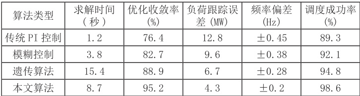 实时调度决策算法采用滚动时域优化策略,每 15 分钟更新一次调度计划,确保系统能够快速响应新能源出力变化与负荷波动,算法核心采用动态规划与启发式搜索相结合的混合优化方法,通过状态空间分解降低计算复杂度,决策变量包括水电站各机组启停状态与出力分配及水库调度策略,算法同时考虑机组爬坡约束与最小运行时间约束[3]。系统建立了三级调度架构:超短期调度(15分钟)处理实时平衡,短期调度(4 小时)优化机组组合,中期调度(24 小时)制定总体策略,当新能源功率预测误差超过 10% 时,算法自动启动应急调节模式,水电站在 3 分钟内响应出力调整指令,实际运行数据显示算法平均求解时间为 8.7 秒,调度指令执行成功率达到 98.6% ,系统频率偏差控制在 ±0.2Hz 范围内,满足电网安全稳定运行要求(见表2)。