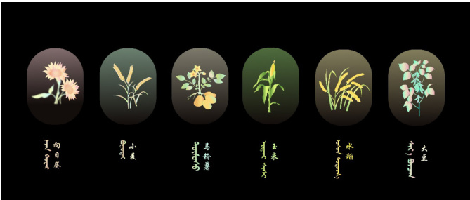 辅助图形在品牌的识别体系中 助图形 牌形象起到强化的作用,更好的突出与其他品牌之间的差异,增加 义更加完整。本课题的辅助图形设计以内蒙古六大农作物的造型为基础进行设计, 图形设计 实际作物的造型,经过提取特征与概括图形设计出了较为简约的图形。