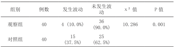 表1 两组患者生命体征显著波动发生情况比较[n(%)]
