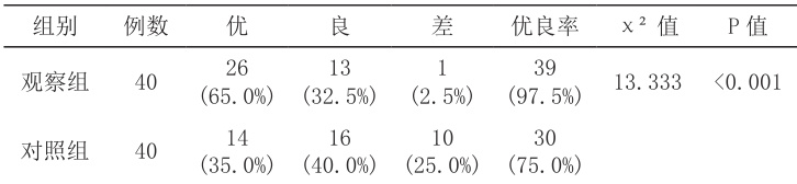 观察组图像优良率显著高于对照组,差异具有高度统计学意义(χ² =13.333,P<0.001)c 。见表 2