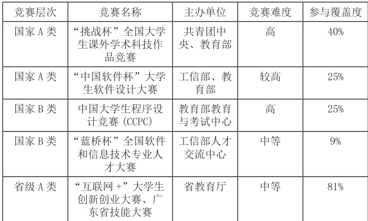 竞赛体系的建设与实施情况如下表所示: