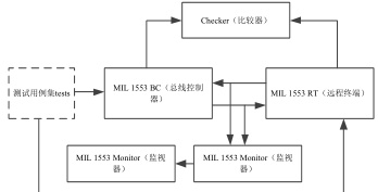 (4)监视器 Monitor 对1553B 总线传输和接收的数据进行监测:监视器记录总线上的协议违规和字符消息,在 transaction 事务包结束时,将所有详 器日志文件, 通过 Monitor 发送至覆盖率收集器function coverage 中。Checker 的作用类似于 UVM 中的 s orebo rd,通过 analysis 分别收集 BC 和 RT 的事务包数据进行比对,完成平台自动化校验的最后一步。