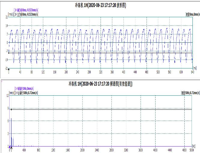 占主导为 8.7mm/s ,同样说明电机存在一定的动不平衡或基础刚性不足的问题。(如图二)