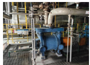 该泵为液环式真空泵,生产厂家为美国格雷汉姆真空热传导技术有限公司生产,设备型号:2PV91670/65021,两端双支点结构。机械密封采用北方新科2000B-150,单端面,波纹管,动环材质为硬质合金,静环为油浸石墨,无机械密封冲洗