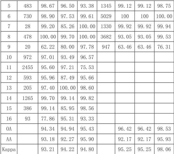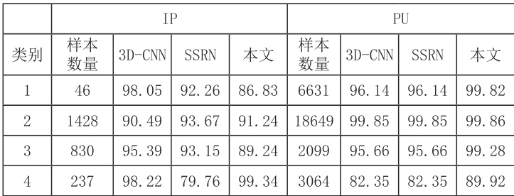 表 1 IP 和 PU 数据集分类结果