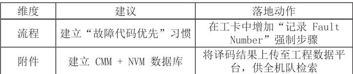 · 提交 SR 时附上 NVM 原始数据、故障时间轴、已执行步骤,可显著缩短 OEM 响应时间。