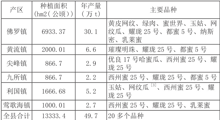 表1 :2024 年乐东蜜瓜核心产区生产指标(数据来源于农业局)