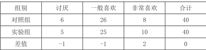 为了确保实验的公平性,实验前对实验组和对照组的学生对体育课的兴趣做了调查,下表为调查数据结果统计。