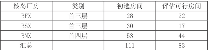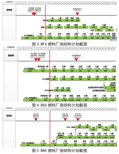 结合材料特性、数量及二次转运需求,在 BFX、BSX、BNX 厂房初选 111 间房间,经土建结构(叠合楼板、压型钢板楼板和 Half-Sc 楼板等免支模技术应用)及运输通道验证,并考虑土建阶段钢结构等材料运输通道和土建材料存放需求,最终确定83 间作为备选存放点,具体分布如下: