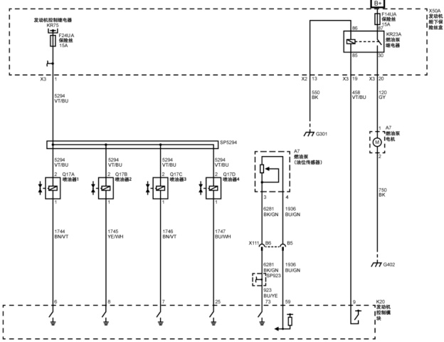 图3 发动机控制系统示意图(燃油控制- 喷油器和燃油泵)