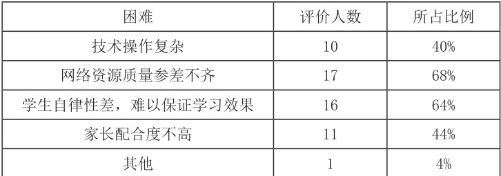 网络资源质量参差不齐是遇到的主要困难。 在寻找教学资源 网络上的教学资源良莠不齐。部分资源制作粗糙,内容存在错误或者过失信息,无法满足教学的需要。这就需要教师在寻找教学资源时, 做好辨别和筛选,不能够盲目使用不恰当的教学资源。