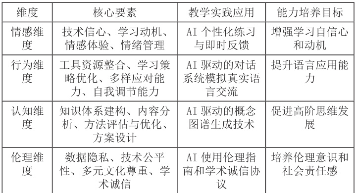 表:AIEL3 四维框架的核心要素与教学实践对应表