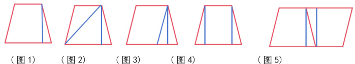 由于受陈旧教育思想的影响,不少教师对于师生位置关系不能摆正,上课只考虑怎样教,不考虑学生怎样学,课堂上教师讲得多,问得碎,怕学生会乱,“抱”着、“扶”着不敢放手,处处牵着学生鼻子走。鉴于以上现象,我们应该切实从教育思想的转变着手,真心诚意地把学生当作学习的主人,把课堂还给学生、放给学生,设身处地地为学生多想想,设计问题真正让学生自己跳跳脚摘苹果。充分发挥教师的启发、点拨、设疑、解惑的主导作用,激发学生的参与动机,引导学生参与教学过程,真正的去学习。要面对全班每一个学生,让他们都能参与,都有机会参与,不存在课堂死角。适当情况下,放手让学生“走”,不但不是浪费时间,恰好是学生主体作用的结果。例如“梯形面积的计算”一课,为了更好的发挥学生的主体作用,进一步放手让学生自己去寻求解决方法,上课前可以通过对平行四边形和三角形面积计算公式的推导过程的回顾直接出示“已知上底是3 厘米,下底是5 厘米。高是 4 厘米,求梯形的面积”的题目及图 (1),启发学生运用已学过的知识求梯形的面积,可以讨论,可以用纸片剪拼, 然后汇报方法及结果, 看谁的解法更多更巧? 同学们通过动手、讨论、总结出了以下几种方法: