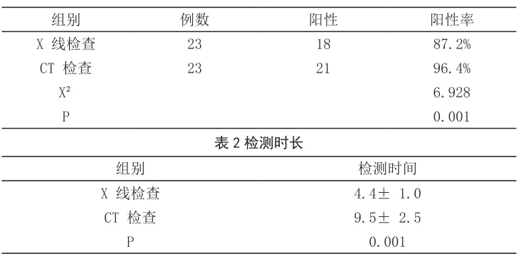 CT 与 X 线检查过程中分析结果显示,对比据均存在显著统计学差异(P⟨0.05) ),差异具有统计学意义。