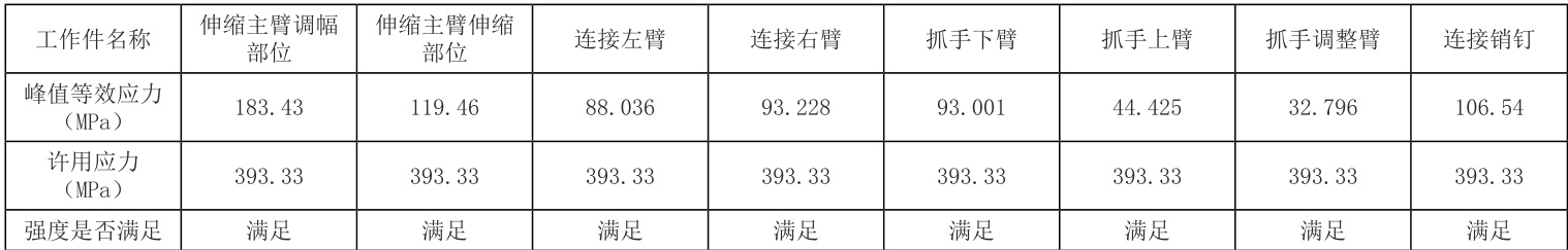 表2 各工作件极限工况受力