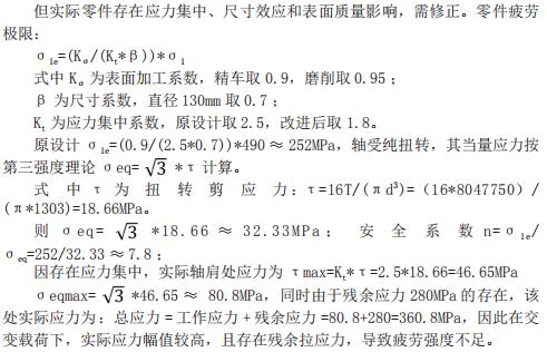 变径圆角优化:直角→R8 圆角 (R/d=0.062) )、键槽优化:末端增加 R1.5过渡圆角、有限元验证:最大应力由487MPa →186MPa(↓61.8%)。
