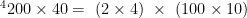 生: 200×4=800 。表示2 个百乘4 得到8 个百,是800。