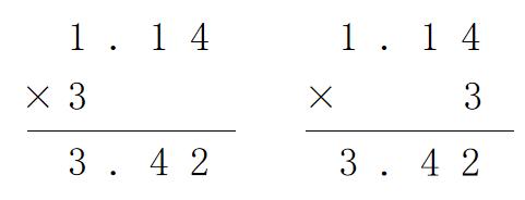 生:1. 14×3 中的3表示3个1.14。也就是说有3个一加起来,3个0.1加起来,3 个 0.04 加起来。