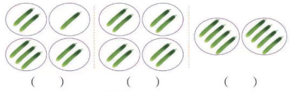 ⑥ 把8根黄瓜平均分给4个小朋友。下面哪种分法对?在对的(