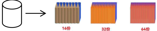 教师借助3D 软件,将圆柱沿高平均分成16 等份、32 等份、64 等份……