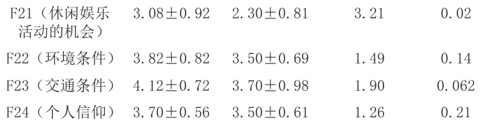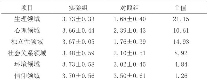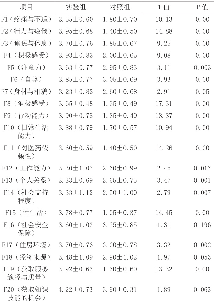 表3 两组患者生存质量各选项的比较分析的独立样本 T 检验(x ± s)