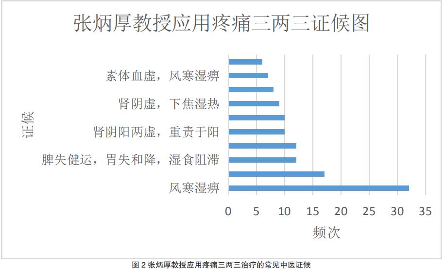 (2)张炳厚教授运用疼痛三两三方治疗的常见中医证候